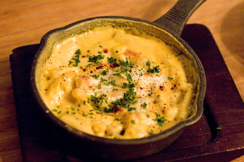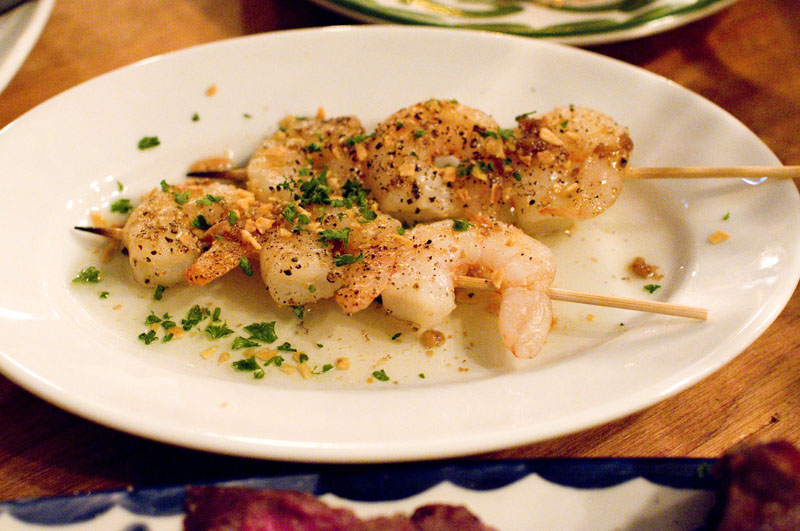 Some menu highlights include a pleasantly peppery Baked Mac and Cheese, tangy Wasabi Cole Slaw, and garlicky shrimp ajillo, served here on skewers rather than in a bowl of hot oil. The Beef Bavette Steak and home-made Salsiccia were the winners of the Four-meat Combo Platter, and next time around we'll be ordering them a la carte. Ask for Dijon mustard on the side to go with the sausage.