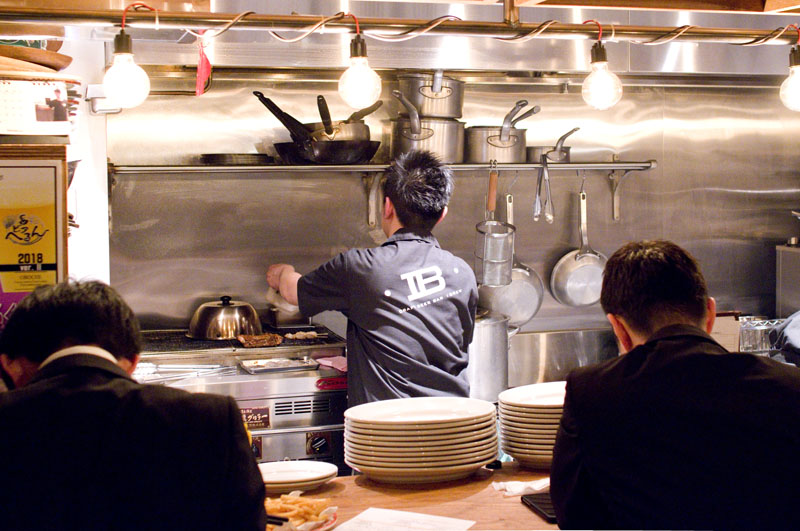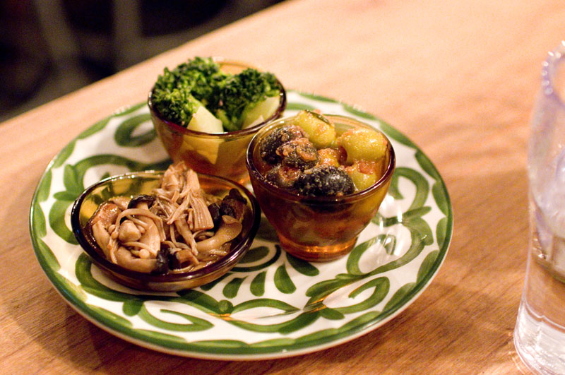 The bar's dining area is bigger than it looks from the outside, with 110 seats as well as a small standing zone up front. The main dining room is furnished with lots of high tables and a couple of small counters, and there are a few cozy-looking smaller dining spaces in the back. Budget around Y2500-4000 if you're having dinner with drinks, or less if you're just stopping in for a couple of beers and a snack.