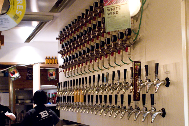 With 47 taps, this spacious branch of the Ibrew craft-beer bar chain boasts one of the largest tap selections in Tokyo. Prices are quite reasonable, with almost all beers priced at Y390 and Y690 for medium- and large-size glasses (270ml and 470ml). In addition to local Japanese brews, there's a good selection of imports from respectable US craft breweries like Schooner Exact and Modern Times.