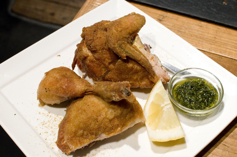 If you're hungry, the fried chicken is a specialty of the house and well worth a try. It's made from an heirloom breed of chicken called Daisendori, deep-fried with a crisp, crunchy skin and served with an excellent cilantro vinagrette. At Y980 for a big serving (half a bird), it's good value for money as well.
