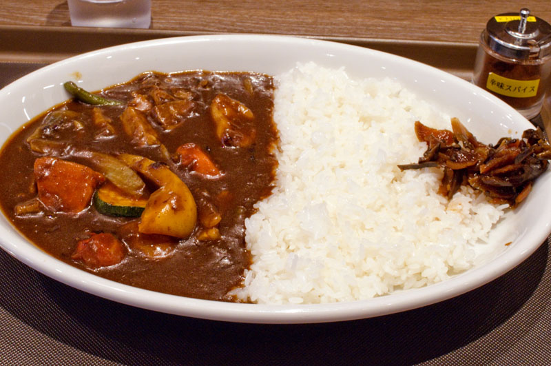 Optional toppings include everything from cheese and spinach to stewed beef and fried chicken. Most basic curries are priced in the Y590-790 range, with add-ons and side dishes a bit extra.