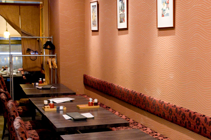 The long, thin dining room is comfortably furnished, and there are a couple of semi-private rooms in the back for parties. Budget around Y2500-3500 for dinner with drinks. They also serve lunch.
