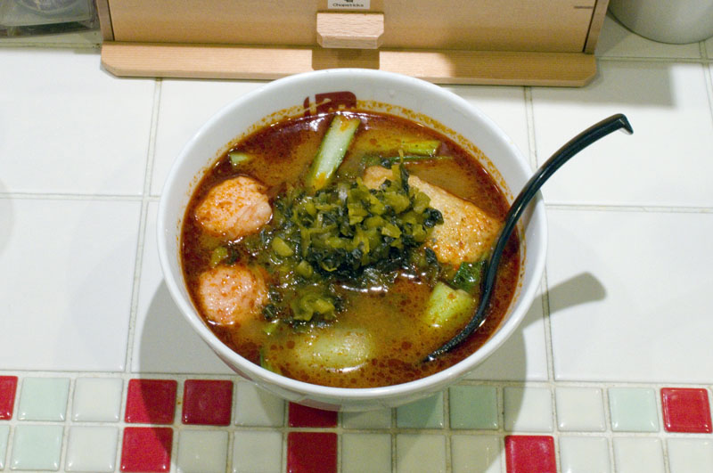 You can start with three toppings (along with the base noodles and soup) for Y750 plus tax. It's always tempting to order a few more though, and additional toppings are priced at just Y110 each. After you've selected your main ingredients the next step is to choose a level of spiciness from 0 to 6 or more.
