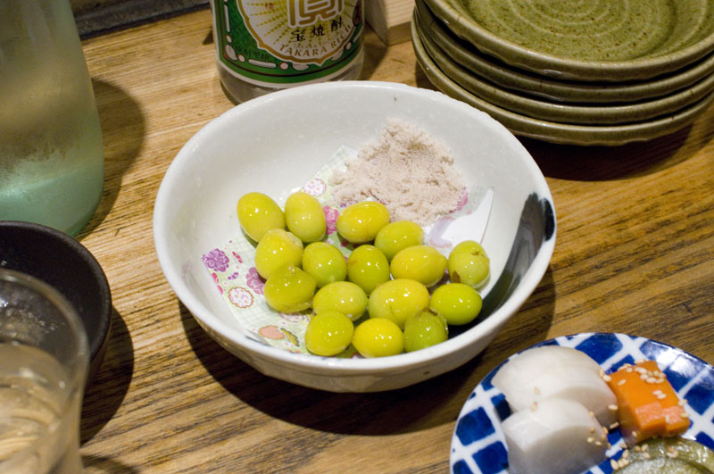 The grilled sausage and the sashimi of the day are also top-notch, as are vegetable side dishes like fried ginkgo nuts with Himalayan salt, fried corn, and renkon-kimpira (spicy lotus-root salad). The sake list is short but effective, centered on five varieties of the excellent Mutsu Hassen from Aomori. Other drink options include shochu, Hoppy, and a very budget-friendly wine list.