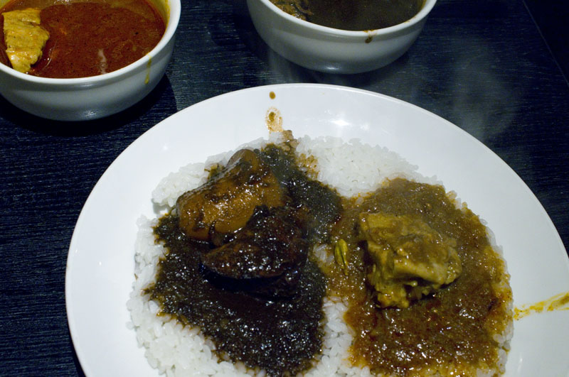 Other curry choices include oyster (in season), minced meat and eggplant, spicy keema, heirloom-breed pork, Japanese black beef, and a "dry" curry. When you order a la carte you can fine-tune your curry by specifying the level of hotness, the amount of rice, and whatever combination of optional toppings you'd like.