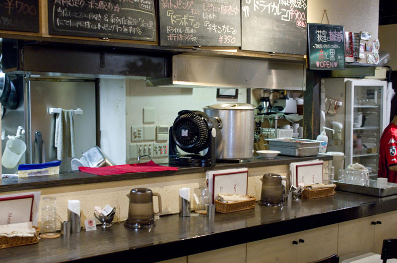 Indo-style Japanese curries are the specialty here, served in a variety of styles. Bombay curry and Kashmir curry are the two most famous dishes, and for Y1500 you can compare them side by side.