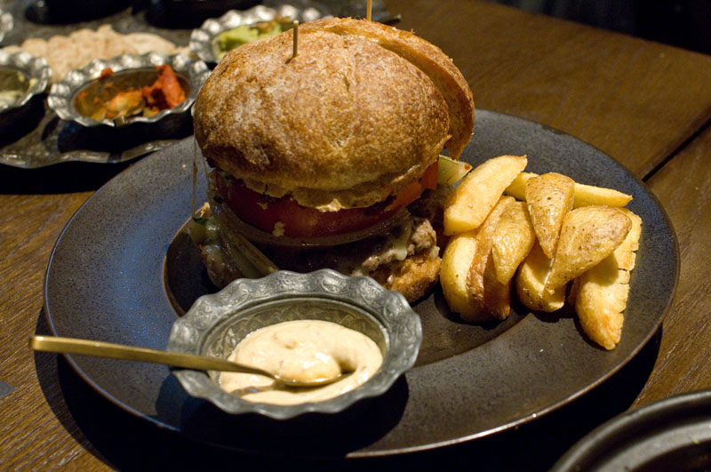 It might not sound very Middle Eastern, but the Arabian Burger is one of Carvaan's standout dishes. It's a voluminous lamb burger served with a harissa-tartar sauce and a Greek yogurt dip, and together they really bring out the flavor of the meat. The burger is topped with an appetizing combination of Feta and Monterey Jack cheeses, tabbouleh, grilled onions and tomato. Another menu highlight is the very meaty lamb tajine, infused with an invigorating blend of spices, swimming in a rich sauce ready to be soaked up by some aromatic cumin rice.