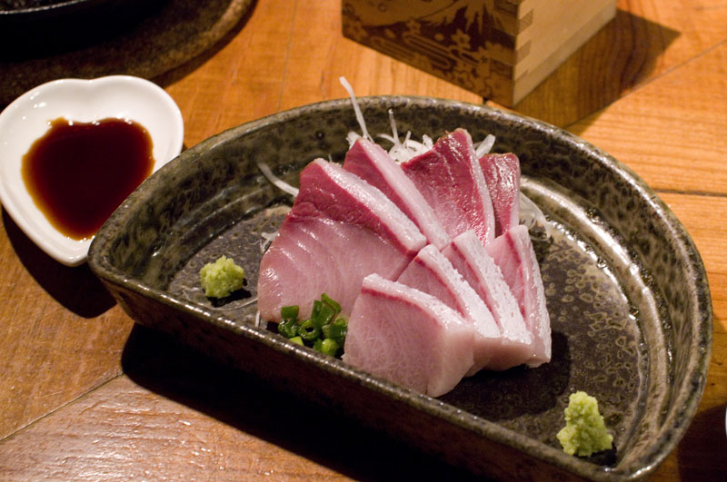 The U-shaped wrap-around counter is relatively spacious, and table seating is comfortable, although the lively acoustics mean that it can get noisy at times. Smoking is permitted at one end of the dining room, with an effective ventilation system to keep it localized. Service is friendly and sake advice is helpful. Budget around Y3000-4000 for food and drink.