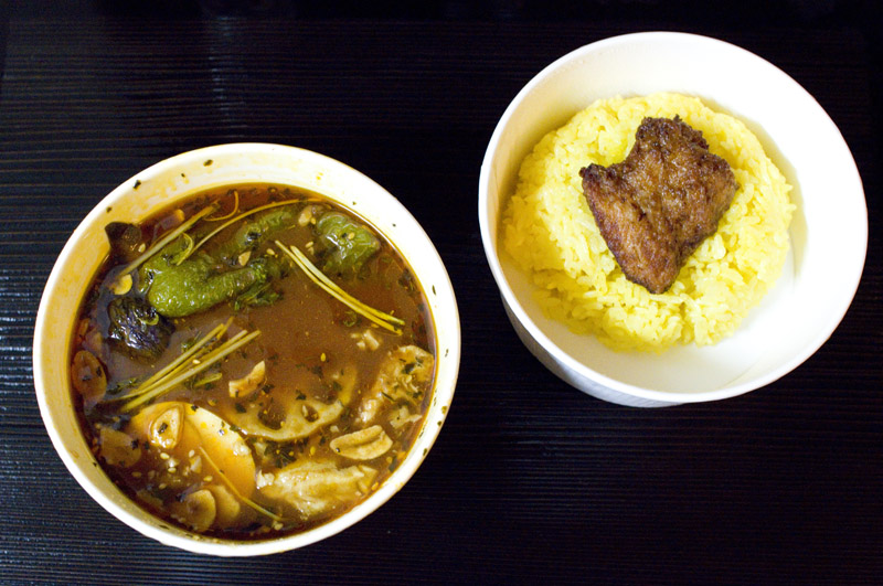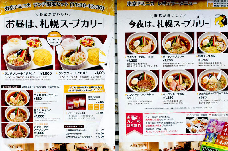 As usual there's a wide assortment of optional add-on toppings available for a small surcharge. Soup curries start at under Y1,000 a bowl, and there are lunch specials served until 1:30pm.