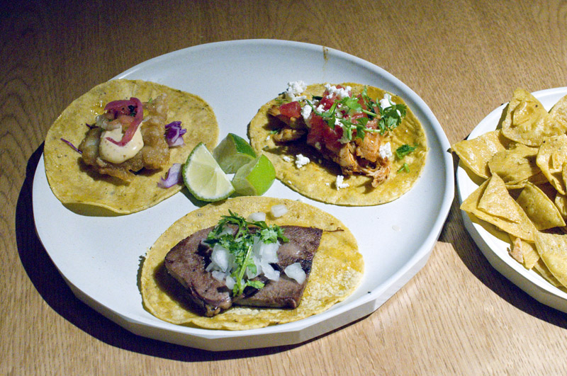 The food menu is small but well chosen to go with the beers, with ten varieties of tacos as well as quesedillas, fried potatoes, kale chips and similar snacks.