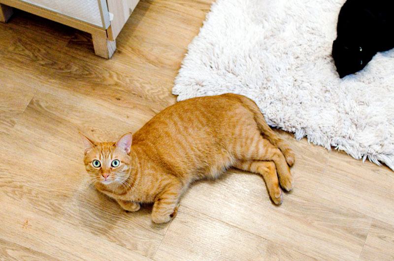 Fairly spacious by cat-cafe standards, Keurig provides ample table and counter space for visitors and a stimulating environment for the resident cats, with lots of climbing and perching opportunities. There's a good supply of cat toys as well, and the staff seem to be proactive in keeping the cats entertained. There were around 30 cats when we visited, including many lively kittens.