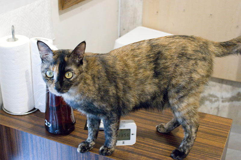 The cafe menu is one of the biggest we've seen in a cat cafe, with numerous fancy desserts and beverages. The first drink is included with the price of admission. Cat treats are Y100 and come in a small plastic capsule which doubles as a cat toy. The treats aren't just kibble, but a bonito-flavored fish paste which seems to be quite popular.