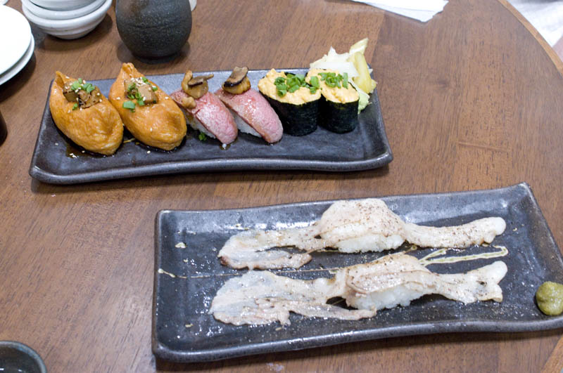As the name implies, the specialty of the house at Nikuzushi is meat sushi. It's pretty much like regular sushi but with meat instead of fish, with toppings like Iberico pork, foie gras, teriyaki chicken, beef tongue, and wagyu sukiyaki.