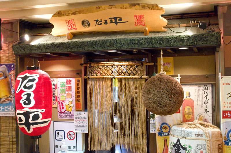 The popular lunchtime karaage teishoku here is built around big, juicy pieces of fried chicken, served with curry salt, mayonnaise and lemon for dipping. Oyako-don (chicken and egg over rice) is another lunch option, and in the evenings Taruhei turns into a yakitori-centered drinking spot, with charcoal-grilled chicken and vegetables priced Y80-200 per skewer.