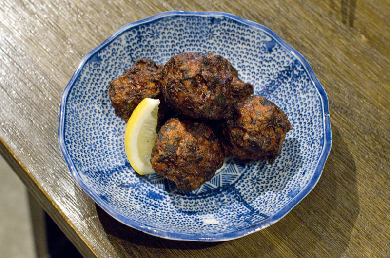 Standing Bar Joe offers a dozen or so seasonal sakes by the glass, a handful of Japanese craft beers on tap, plus shochu, wine and cocktails. The food menu is relatively compact, but it offers a surprising variety of pork dishes, showcasing premium pork breeds from around the country. It all made sense when we learned that the bar is a sister shop of Butagami, the famous tonkatsu restaurant in Nishi-Azabu.