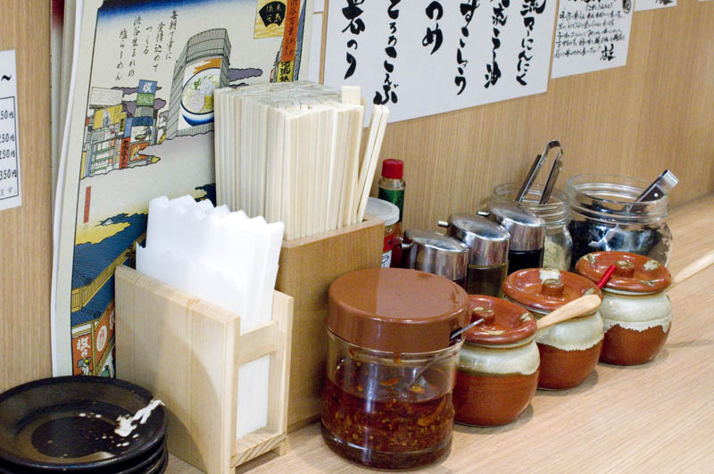 If you want a bit of extra flavor, the countertop is loaded with condiments, including small pots containing yuzu kosho, spicy miso, and yes, more garlic paste. Other enticing ramen variations include green curry, shrimp wonton, soupless cheese mazemen, and asari clam. Gyoza dumplings (including double-cheese gyoza), shrimp wontons and fried chicken are all available as side dishes.