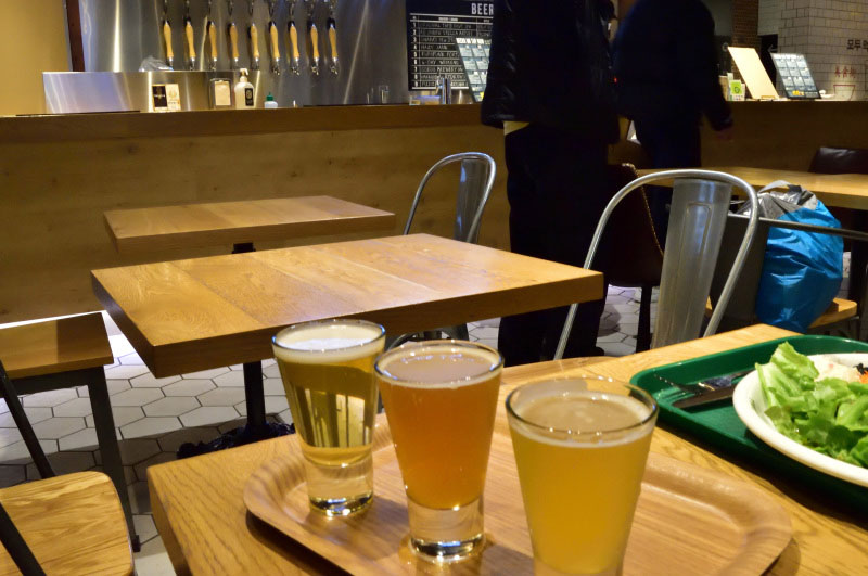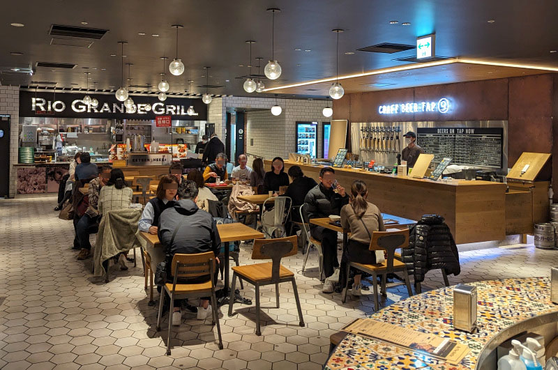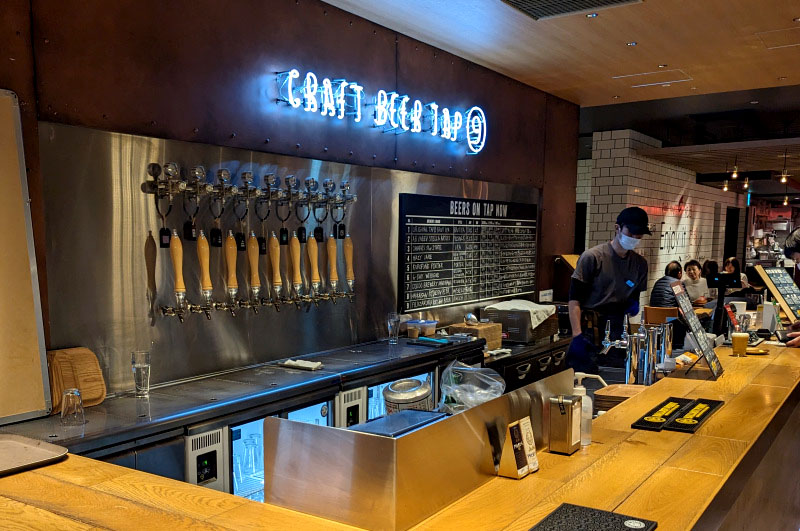 Located near the entrance to the Toyoko line tracks in Yokohama Station, this is a convenient spot to grab a pint or a tasting flight when you're passing through the area. It's part of the food court area on the B2 level of Cial Yokohama, so you have a wide choice of snacks to go with your beer - the two closest food stands specialize in Chinese dumplings and Brazilian churrasco-style grilled meats.