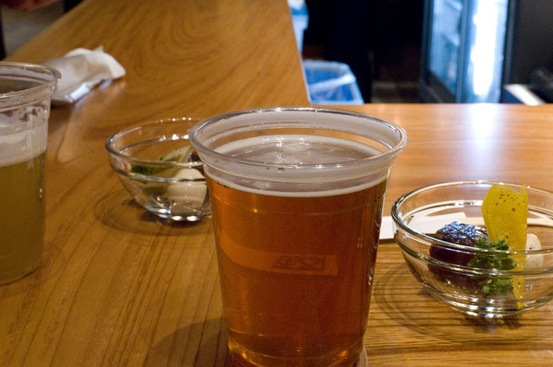The bar initially has two of their own beers on tap along with guest beers from popular breweries like Baird and Coedo, but they expect to gradually expand their own selection. Note that there's also a standing sake bar in the same building in case you want to do a very local bar-hopping tour.