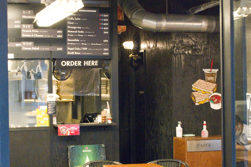 Side dishes include onion rings, fries, cheese fries, Caesar salads and minestrone soup. A plain Cheese Melt is Y450, while a Chili Cheese Melt will run Y680. There's open-air seating facing the busy Meiji-dori sidewalk, with a couple of outdoor tables when the weather is nice, or you can get everything to go.