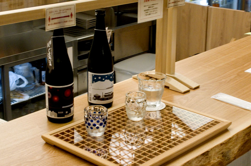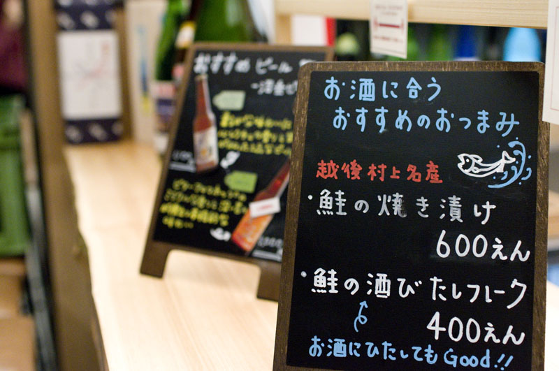 This stylish design shop showcases products from Niigata, including the prefecture's most famous export - sake. They stock around fifty kinds of sake, and they're equipped with a small standing-bar area where you can sample a few of them while you're here. Choose from seven sake on any given day, priced at Y600-1,200 for a 90ml glass. If you have trouble choosing, the bar's preselected tasting flights will let you compare different styles side by side.