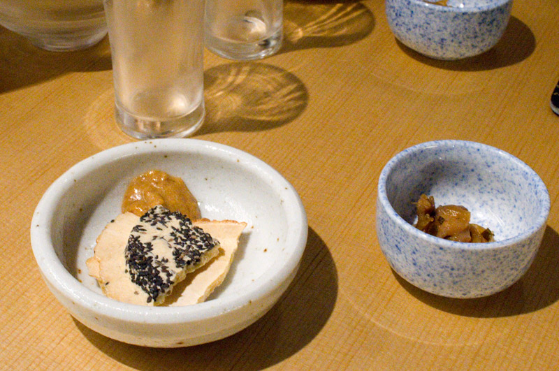 The food menu seems to play a supporting role to the sake, with simply prepared dishes based on local ingredients like mackerel, horsemeat and Takkogyu beef. We enjoyed several dishes made from Shamo Rock chicken - a local hybrid of shamo (a bird bred for fighting) and Plymouth Rock chickens. The tsukune was especially good, as were the ringo-tsukune (pickled apples), both of which go very well with sake.
