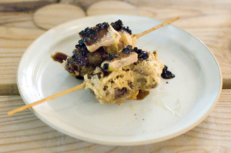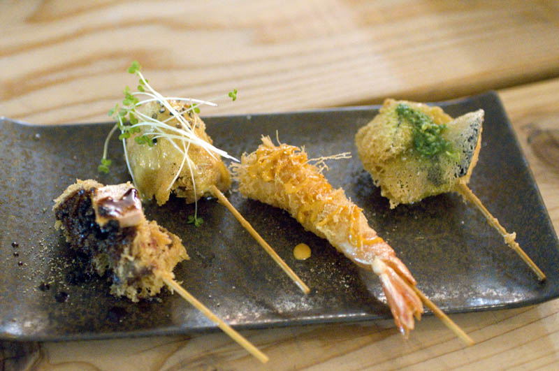 "French kushiage" is the unusual specialty at Beignet. Deep-fried morsels of meat and seafood are assembled with a creative flair, and served alongside original French-style side dishes and international wines. The artful presentation and intriguing match-ups of ingredients, sauces and garnishes add an element of surprise and fun to the dining experience.