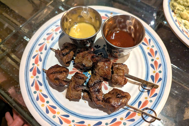 If you're putting together a full-course meal you can add on dishes like grilled beef brochettes, spicy pozole pork soup and of course guacamole with nachos. Drinks include standard and original cocktails (margaritas, mojitos, pisco punch), several mocktails, beers and budget-friendly wines.