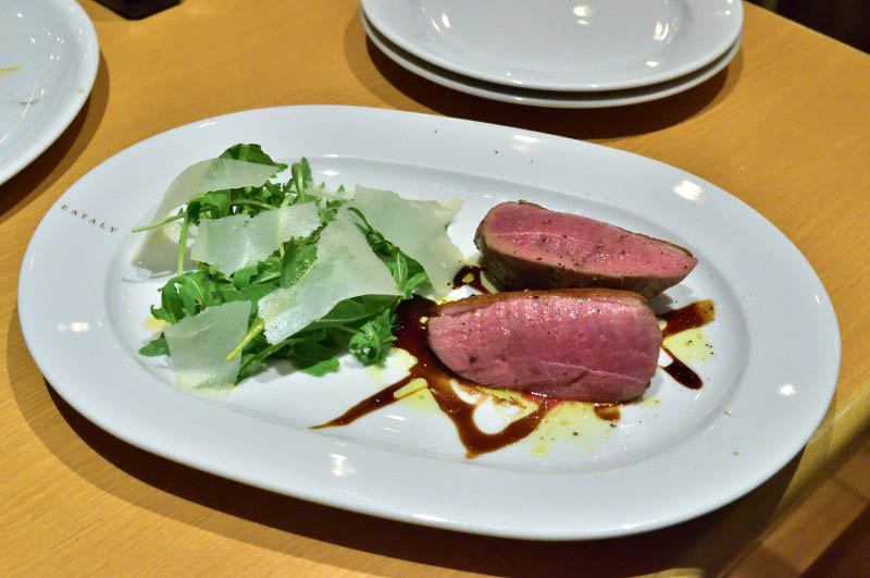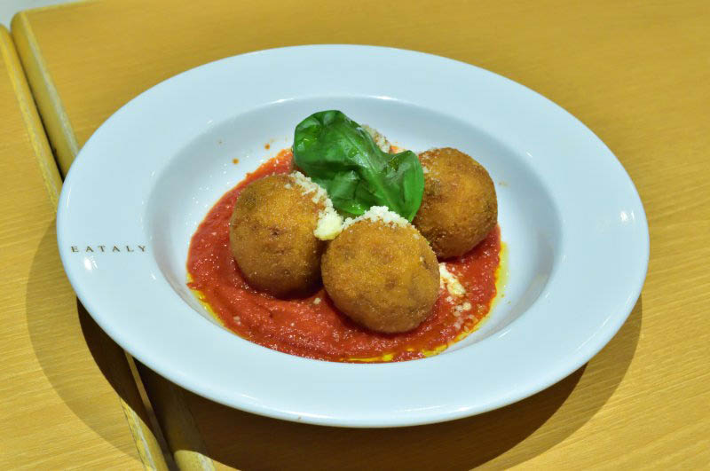 Arancini (cheese-rice croquettes) starters are quite tasty, complemented by a piquant tomato sauce, while mains of grilled duck and grilled pork are succulent and well seasoned. Overall Eataly's cooking represents the more the traditional end of Italian cuisine - reliably solid fare without surprises.