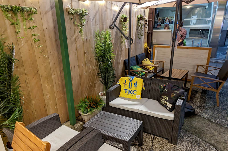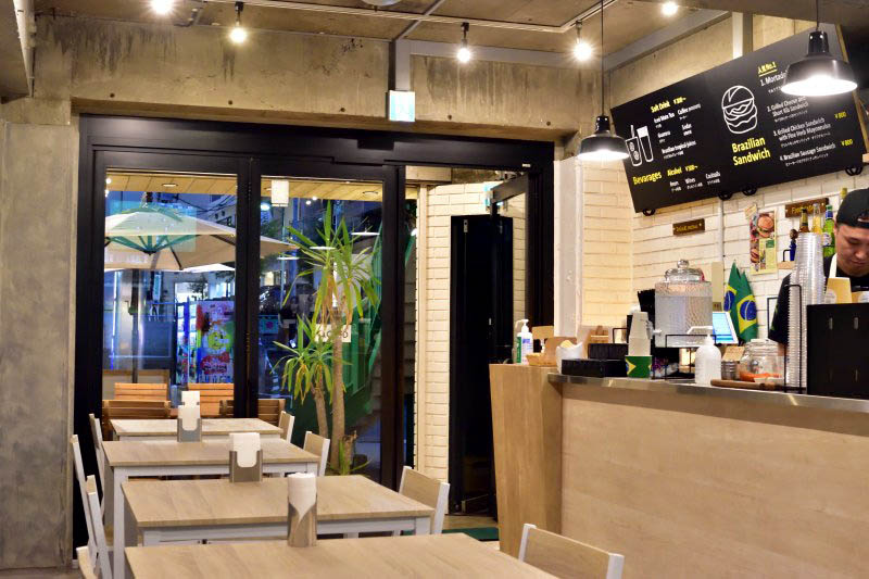 Side dishes include Brazilian street foods like coxhina croquettes, pastel meat pies, and grilled sausages. There's some outdoor seating on the front patio, or you can sit inside and watch football matches on TV. Most sandwiches are priced at Y800-1,000.