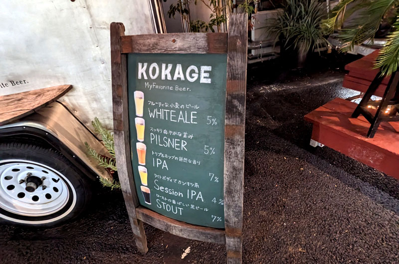 Parked in one corner of the trendy B-Flat Commune market area hidden in the back streets of Omotesando, the Kokage beer truck is perfectly set up for seasonal outdoor beer drinking. They serve five beers from Karuizawa brewery Cocono Hop Co., ranging from white ale to stout.