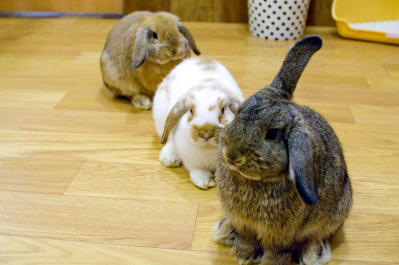 The rabbits seem friendlier and more outgoing than average at this small cafe. Perhaps it's a result of the cafe's policy of providing all visitors with a complimentary packet of rabbit snacks upon arrival. There are two small playrooms, with two or three rabbits running loose and room for two or three customers in each.