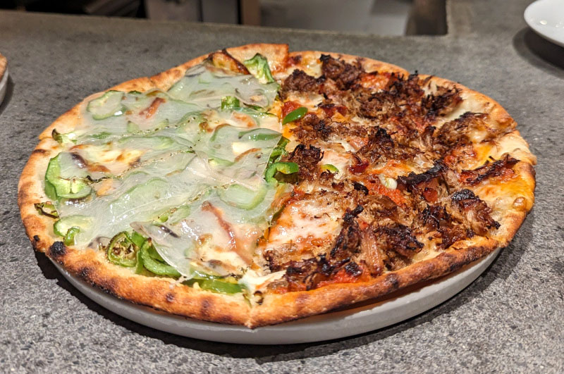 The juxtapositions of ingredients may be unusual but they're well thought out. Anago (conger eel) with Sansho Pepper is perked up by crunchy lotus root that adds a textural element, and the Wasabi, Mushroom and Pancetta wouldn't be nearly as interesting without its wasabi kick. Other successful combos are Pulled Pork, Porchetta and Green Chili Salsa; and Sakura Shrimp with Green Onions. Happily all the pizzas are available in half sizes, because you'll probably want to try more than one variety.