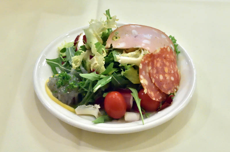 Pizzas are easily foldable and slightly chewy, getting crisper at the edges where there is some char. Our Macellaio ("Butcher") pizza was loaded with tasty bits of meat (salami, ham, nduja sausage) and a good layer of flavorful mozzarella. The salad was well dressed, with slices of salami and mortadella livening things up. A whole pizza plus salad is quite filling, but if you have a good appetite there are also prix-fixe lunches that come with additional appetizers and dessert.