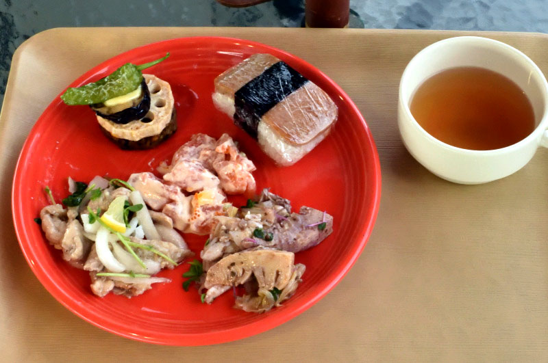 Among the menu highlights are a moderately spicy salmon poke and a luscious tiramisu dessert. Spam Musubi comes with toppings like cheddar cheese, avocado-cheese and takuan pickle, with a daily Spam Box featuring three varieties. For dessert there's French toast, cream frappe concoctions and Hawaiian Malasada donuts.
