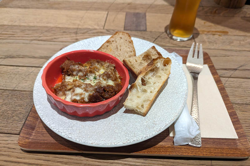 The bar's food menu showcases Barrel Smoke meats, and at lunchtime you can get focaccia sandwiches stuffed with the "prosciutto of the day". The excellent charcuterie platter comes in two sizes and features six or seven different meats, plus thinly sliced raw mushrooms as an option. Side dishes include baked pulled pork with cheese, German potatoes with crispy bacon, and aged bacon and mushroom ajillo.