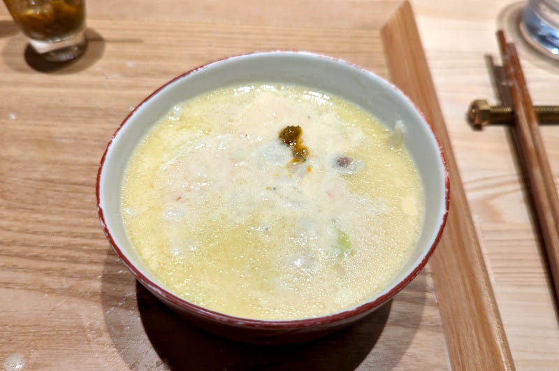If you don't have time for a full-course meal you can just order ramen. Besides Carbonara Tsukemen, other options are Creamy Pork (tonkotsu style), Nishimura Noodles with Porcini Mushrooms (soy sauce style), spicy Tantanmen (summer only), and Mentaiko Carbonara Tsukemen, featuring the chef's own special mentaiko.