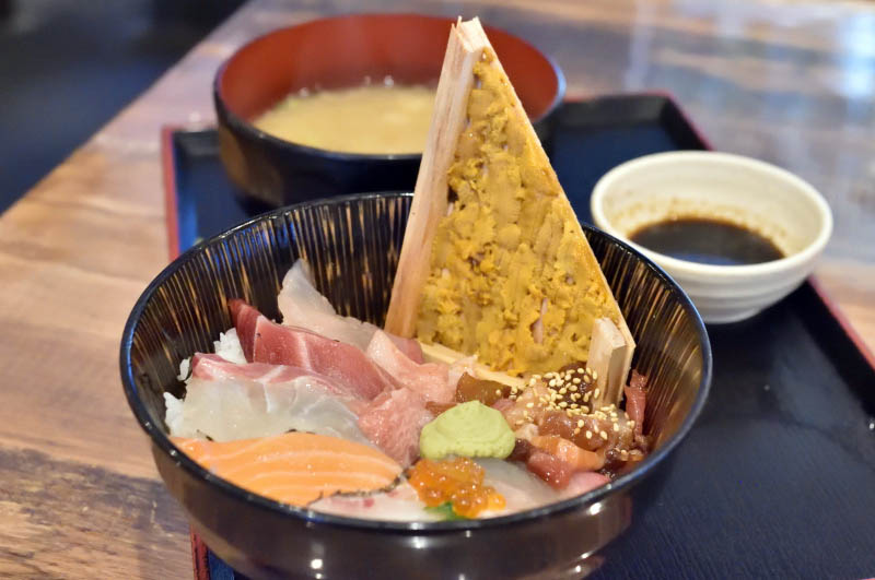 Other than sushi, you can choose from generously topped seafood donburi bowls, tempura platters, and all kinds of freshly grilled fish. The miso soup that comes with your meal is served in extra-large bowls and filled with tasty chunks of whitefish. They've put together quite a nice sake list as well, with seafood-friendly styles like Tengumai Yamahai.