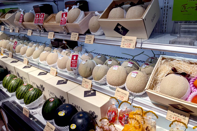 At the "grocery" end of the floor, dozens of small kiosks sell fresh-baked pastries and bread, fresh produce, perfectly formed melons and other fruit, and premium-grade meats and seafood. You'll also find packaged candies, Japanese-styles sweets and crackers, and a wall of curries from all over Japan.