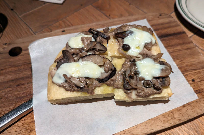 The bread at Rosemary's is an excellent home-made focaccia, served with toppings like mozzarella, basil, and tomato; mushroom-cheese; prosciutto, arugula and seasonal fruit; or a simple rosemary and salt.