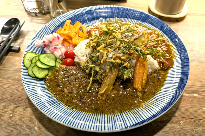 The Indian-inspired spice curries served at this seven-seat counter shop are superb. One thing that sets them apart from the competition is the high quality of their seasonal vegetables. These are apparently sourced by the shop's "vegetable sommelier" and indeed the produce here seems to be lovingly curated. Even our lassi drink was studded with big chunks of tasty fresh peaches.