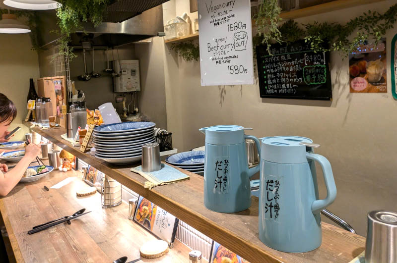 The onions, tomatoes and tiny mushrooms incorporated in the curries are also first-rate, as are the pickles served on the side. One local Nagoya touch is that you can order your curry "Hitsumabushi-style", with broth poured over it, or as a regular curry.