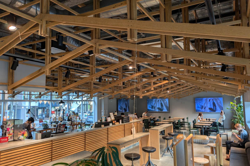 Conveniently located in Rayard Hisaya-odori Park, this combination cafe and maker space has a striking, architecturally ambitious interior and offers panoramic views of the park. The cafe serves single-origin Aeropress and pour-over coffees, made with beans sourced from a few different Nagoya roasteries. The compact food menu features original curry rice, bibimbap, sandwiches and a range of desserts.