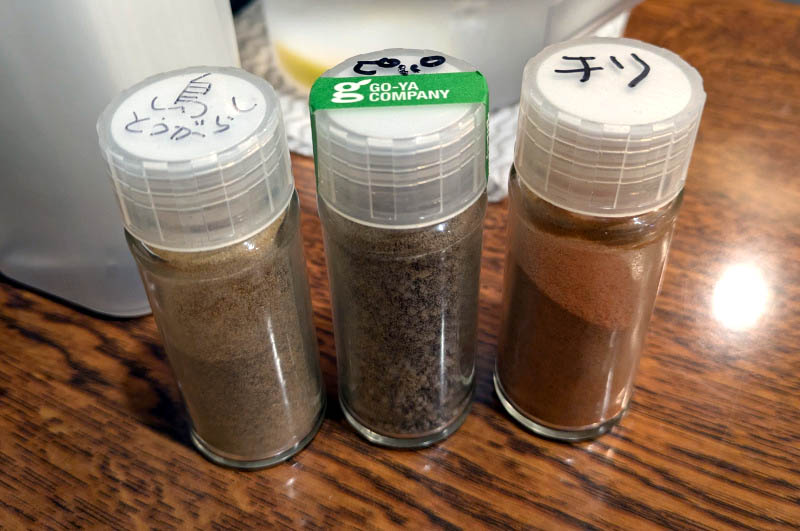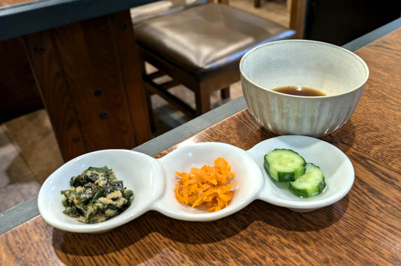 The curry roux is European-style ("ofu"), built on a subtly flavored fond de veau that takes four days to prepare. You'll be presented with a tiny bowl of the fond de veau to sample at the start of your meal, along with a selection of rustic-style pickles. Chili powder, Okinawan togarashi powder and Okinawan peppers are provided on the table if you want to liven up the mild roux.