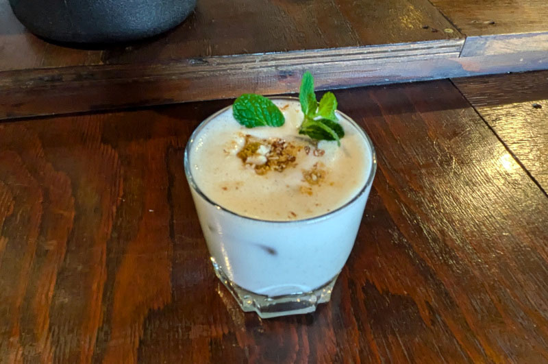 Our lassi also ranked well above average, topped with crushed nuts and presented like something you might find in a fancy cocktail bar. Other drinks include Key lime soda, chai (hot or iced), rum chai, and craft beers.