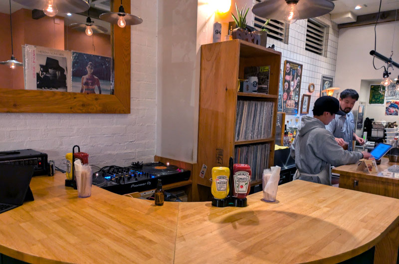 The atmosphere is laid back, and the shop has a cozy neighborhod feel to it. This is the kind of place where they play reggae on the stereo system, and maintain a bulletin board of local musical and theatrical events. Take-out is available.