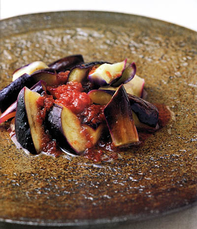 3. Bring a pan of water to a boil, add the eggplant, and cook for 3 to 4 minutes. Alternatively, fry the eggplant in 2 tablespoons of olive oil.