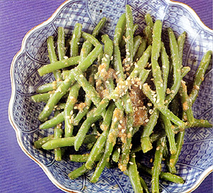 3. Toss the green beans in the sesame dressing and serve as a side dish.